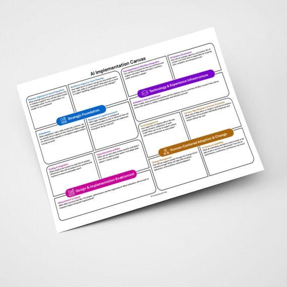 Introducing the AI Implementation Canvas, a practical framework designed to spark meaningful, cross-functional conversations that keep strategy, people, and purpose in sync.
